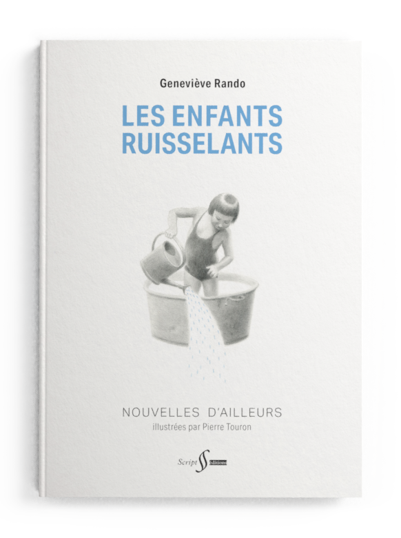 Geneviève Rando partage ce recueil de nouvelles avec l’artiste et illustrateur Pierre Touron. Aux ailes du désir qu’elle accroche au dos de ses personnages, il répond en dessinant des îles d’utopie, théâtres minuscules dérivant entre ciel et terre, où tous les enfants ruisselants viennent trouver refuge. Dans le dialogue entre le texte et l’image, un ailleurs prend forme. Le paysage se décline en poème, le récit se traduit en tableau :